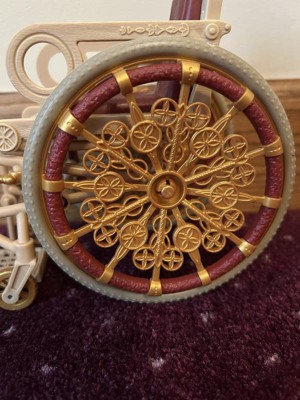 [This review was collected as part of a promotion.] The Wicked Nessarose doll comes wearing a lovely cream dress with burgundy trim. Although most of the details are printed on, it is a good quality dress. She sports matching ankle socks in the same color combination and her iconic silver slippers that give her the ability to walk. Her hair is good quality and very soft. She is a pretty doll with brown hair and eyes and a natural lip. She has articulation at the head, shoulders, elbow, wrists, hips, and knees. She comes sitting in her wheelchair featuring a steampunk design in shades of tan, burgundy, and gold. The wheelchair can roll or be locked into place. There are many options for playtime with this doll. I like that her right hand can actually grip the wheel of her chair. She can be a part of any doll story even if the other wicked dolls aren’t in it. Mine has slightly looser joints. That is the reason for the 4 stars instead of 5. I plan on playing with this doll with my oldest granddaughter and I know we will have a great time.