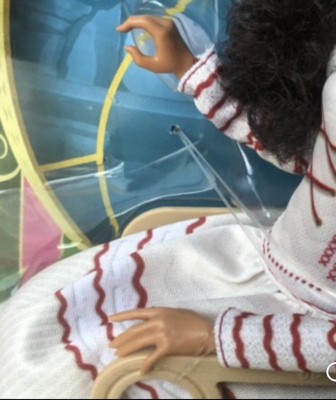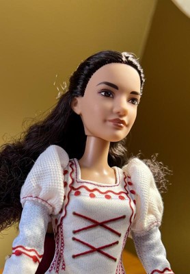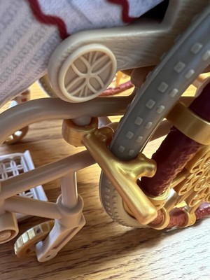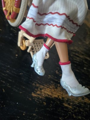 [This review was collected as part of a promotion.] We think Nessarose is the most beautiful of the Wicked movie dolls! Her face sculpt and makeup are realistic right down to the dimple on her left cheek! Her hair is gorgeous and my granddaughter can’t stop brushing her curls. Her dress is well made and although the details are printed on polyester rather than actual embroidery or ribbons on textured fabric, it’s well executed so that it looks dimensional on first glance. Her legs bend at the knees so that she can properly sit in her wheelchair. Her arms are jointed at the elbow and wrist, with her right hand posed into a slight grip so that she can place it on the wheel of her chair when sitting. The left hand is in a graceful and expressive pose. Very feminine! Our only complaint is that her feet are larger than typical Barbies so that the beautiful silver shoes can’t be shared with any other dolls than Glinda or Elephaba. The wheelchair is one of the most elaborate accessories we’ve seen made for a Mattel doll. So many realistic and intricate details and there is a functional hand brake on each wheel! We hesitated to open the package to play with this doll and wheelchair and plan on purchasing another just to keep in the box for display. Too bad that the box couldn’t have been designed in such a way that it wouldn’t show damage when opened up and the contents could be put back inside after play.