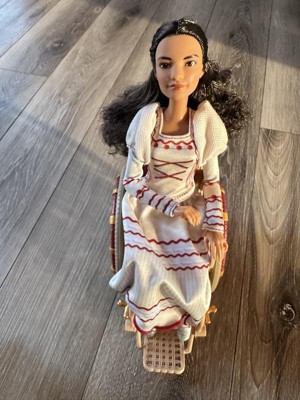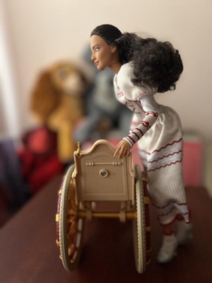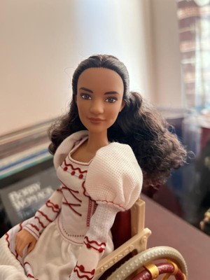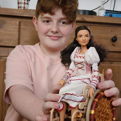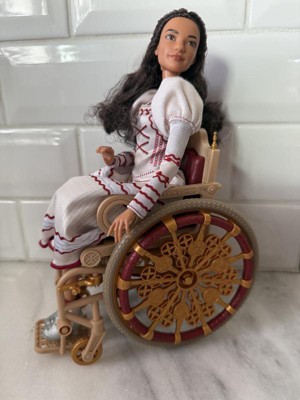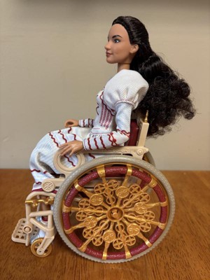 [This review was collected as part of a promotion.] The doll looks so much like the actress from the movie, and her outfit is really detailed. She has lots of bendable joints. Her wheelchair is really cute and functional, it has brakes and rolls easily with a little step to keep her feet up.