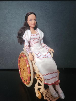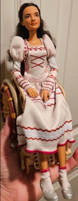 [This review was collected as part of a promotion.] This doll is perfect for children and collectors alike. Collectors would love the details of the wheelchair and the beauty of the doll. My daughter enjoyed the similarities to the recent movie. The doll comes with a wheelchair, dress and shoes. My daughter really enjoyed pushing the doll in the wheelchair. She also learned about the brakes on the wheelchair. The only complaint my daughter had was keeping the shoes on the doll. However, she has played with the doll everyday since she opened the package.