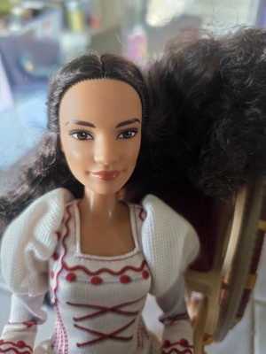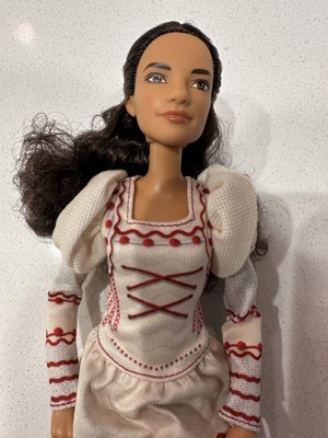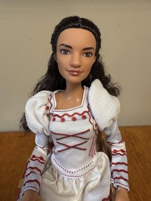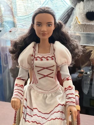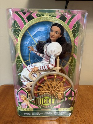 [This review was collected as part of a promotion.] This Nessarose doll from Wicked is wonderful on details. While the dolls eyes are striking I do wish the face was done just a bit better to look more like the actress who potrays her but it isn't a dealbreaker. I love that she is wearing the silver heels that we see her given in the movie just adds to the extra little details that make this doll stand out. The wheelchair is beautiful and I love the representation of handicaps that are in the real world. Overall this dolls is beautiful and a fun addition to continue the exciting tale of Wicked after the movie has eded. One thing to be cautious about when playing with this doll is that the hair does tangle quite easily.