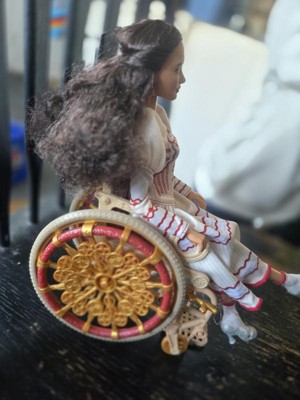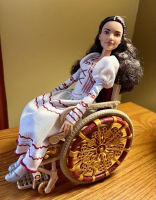 [This review was collected as part of a promotion.] The intricate details on the box carry over to the doll and her accessories including her wheelchair. The wheelchair is not flimsy junk. Her dress is not paper thin. The moving and poseable arms and legs are appreciated and preferred.