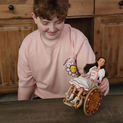 [This review was collected as part of a promotion.] Our girls absolutely love playing with this unique Barbie. The wheel chair is very detailed and fits the Barbie perfectly. They’ve been putting other Barbie’s of theirs in the wheelchair too. Lots of fun adjustments can be made.