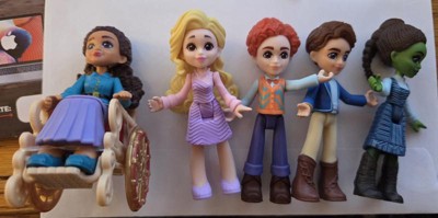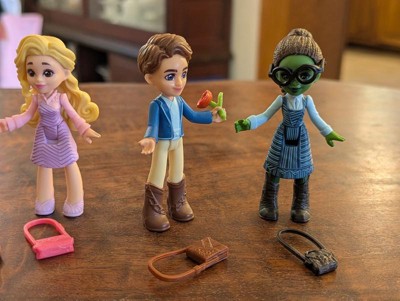 [This review was collected as part of a promotion.] My six-year-old LOVES these! They are even cuter in person. The bobble-head feature is unexpectedly fun, it makes playing with them and creating dialogue much more realistic! The accessories are cute, a bookbag or the book book fit in the pouch behind Nessa's wheelchair. Elphaba's glasses don't stay on well, but that is the only issue. We especially love that we can throw them in a a baggie in my purse - they're small and light enough to bring anywhere you need a distraction or quiet play activity.