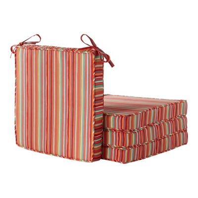 Versatile Fit: Designed with a reversible style and corner ties, these rectangular cushions (18" W x 17.5" D x 2.5" T) offer a universal fit for most standard outdoor dining chairs.
