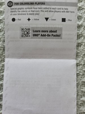 [This review was collected as part of a promotion.] The Uno add-on reverse pack adds a new element of excitement to a classic game. We added it to a very old deck of uno cards and learned a few things. The new uno cards have shapes that correlate to their colors so that color blind people are able to play. My adult brother was excited to hear this as he has never been able to play color based games. The kids and I liked the reverse and draw 2 and the reverse and skip cards best because they were the easiest to remember what actions get performed. We needed to keep the box handy to remind us of the actions of the other 2 cards. I will mention that the Uno logo on the front of the add-on deck does not match our old deck logo. This wasn't really a problem and added anticipation when you knew a player had an add-on card, but didn't know what it was.
