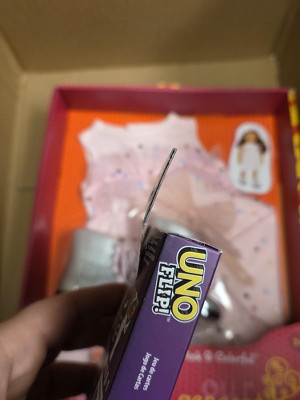 Brace yourself for the next iteration of classic UNO: UNO FLIP!. It's the matching game you know, plus exciting new twists -like a double-sided deck, special FLIP card and tougher penalties -that give classic gameplay a competitive edge. There is a "Light Side" to the deck, which plays like classic UNO, and a "Dark Side" where penalties are super-tough. Play the FLIP card and all cards in your hand, the draw pile and draw deck are flipped over to reveal an entirely new set of numbers and colors on the opposite side! The holder of the FLIP card determines whether or not you play on the Light Side or Dark Side of the deck -and when you switch it back around. The Dark Side of the deck includes new action cards that really shake things up, like Draw Five and Skip Everyone cards. Strategize to rattle your competition and be the first to get rid of your cards to win. When you're down to one card, don't forget to shout "UNO!" Now card game-lovers can get UNO FLIP! in a sturdy tin that's great for storage and travel. This fun family card game is perfect for 7 year olds and up. Colors and decorations may vary.