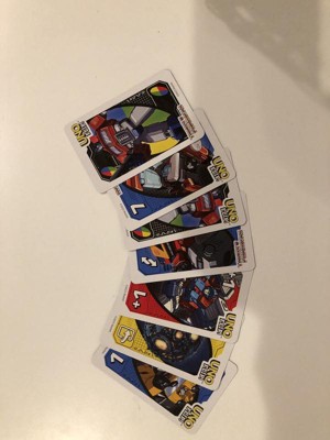 [This review was collected as part of a promotion.] This is such a fun twist on uno! On any turn the cards in your hand could change completely! My son also really likes Transformers, so he really likes that part of it too. I would highly recommend this uno game to add to your card game collection!