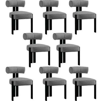 Upholstered Accent Chair Modern Boucle Dining Chairs with Ergonomic Curved Back, Soft Padded and Wood Legs for Kitchen, Living Room