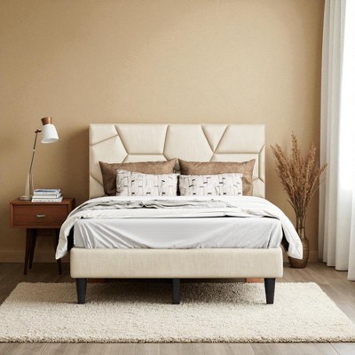 Transform your bedroom into a haven of comfort and sophistication with the TruAIR Upholstered Bed Frame with Wingback Headboard. Wrapped in luxurious beige velvet and padded with soft sponge, this modern platform bed offers both visual elegance and exceptional comfort. The addition of dual headboard storage pockets keeps essentials like phones or remotes conveniently within reach. Built with solid wooden slats and center support legs, the bed ensures long-term durability, while its noise-free structure delivers peaceful rest every night. Designed for versatility, this bed frame supports mattresses with or without a box spring, offering flexibility and style for any modern home.Key Features: Elegant Wingback Headboard with Velvet Upholstery