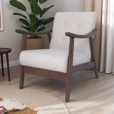 Upholstered Button-Tufted Accent Chair with Solid Wood Legs and High-Density Foam Seat for Living Room