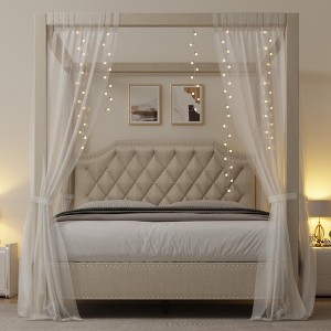 - 【Stylish & Unique Canopy Bed】The upholstered bed frame's headboard boasts a unique & elegant nailhead decoration & button tufted design. The headboard of canopy bed are made of soft sponge,upholstered in skin-friendly velvet fabric,allowing for a comfortable soft back support to lean against while reading or using your phone, providing an ideal way to unwind and enjoy a great night's sleep.