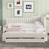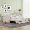 Daybeds are the perfect multifunctional solution for small spaces, such as studio apartments, guest rooms, or home offices. They serve as both a cozy sofa for reading or napping and a comfortable bed for overnight guests. Crafted from durable plywood and MDF, this daybed features linen-blend upholstery in a solid finish, blending seamlessly with any decor. It includes three spacious lower drawers for storing linens, clothes, games, and more, plus a convenient trundle for additional sleeping space when hosting guests.
