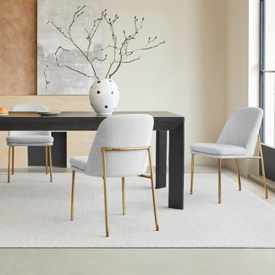 - Upholstered dining chairs in breathable linen-blend fabric with 10% real linen