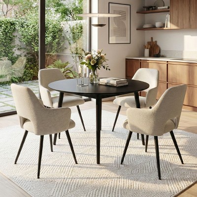 Upholstered Dining Room Chairs Set of 4, Modern Terra Fabric Kitchen Chairs with Curved Back, Walnut Finish Metal Legs - Panipeachy