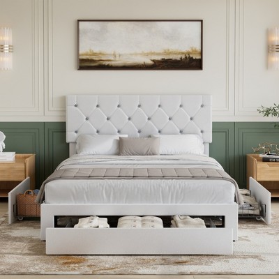 Upholstered Full Bed Frame with Led Lights and Storage Drawer, Cute Velvet Led Bed Frame with Headboard for Kids, Girls, Boys,Blue+White