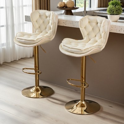 - (Sturdy Golden Metal Legs & Chrome Base): Durable metal frame with integrated footrest supports daily use while adding a stylish, modern touch to your space.