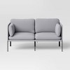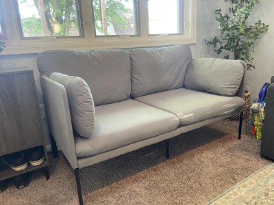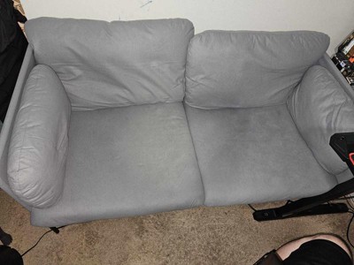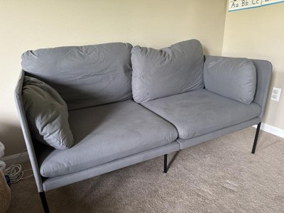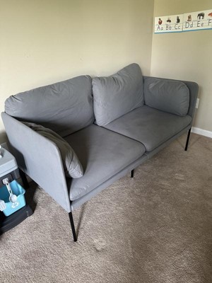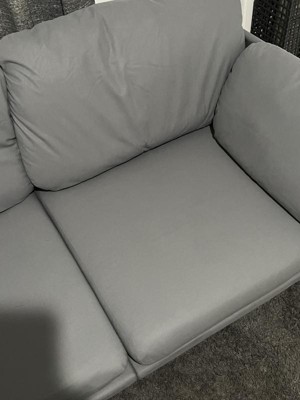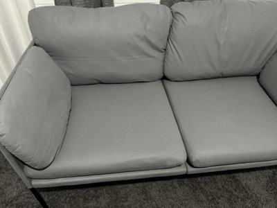A: Hello No name - Thank you for your question! This gray loveseat features seat and back cushions to help you sit in comfort. Designed with a metal frame in a powder-coated finish, this loveseat makes a perfect addition to your home. We know you'll like it! - Nikitha