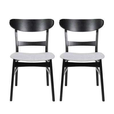 Upholstered Mid-Century Modern Dining Chair Set of 2 with Channel Stitching, Splayed Rubberwood Legs for Dining Room