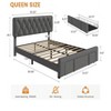 Upholstered Bed Frame 2 Drawers Solid Wood Slats No Box Spring Needed Beige Grey Full King