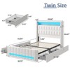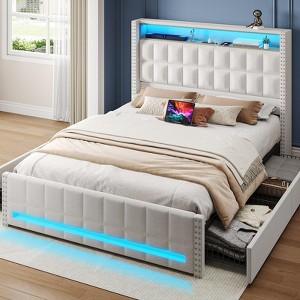 Upholstered Platform Bed Frame with Charging Station, Drawers & LED Headboard