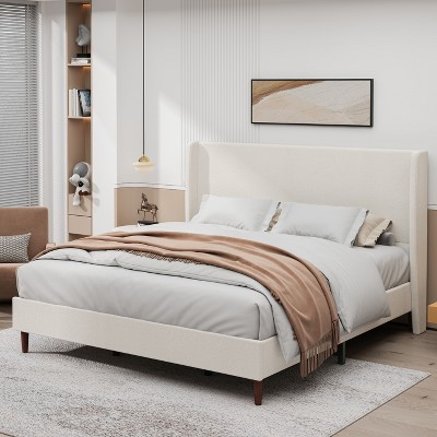 Experience the perfect blend of comfort, durability, and style with our King Bed Frame with Headboard. Upholstered in high-quality linen fabric and cushioned with soft sponge, this bed frame offers a cozy and inviting surface for a restful night's sleep. The sturdy metal frame combined with 12 wooden slats provides exceptional support, accommodating up to 800 pounds, ensuring long-lasting reliability.