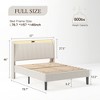 Full bed frame made of high-quality metal and wood; heavy-duty support feet with plastic plugs to care for your floor; super sturdy and durable, supports up to 800 pounds 2 USB port, and 2 AC outlets for easy bedside charging of all your devices. Indulge in a convenient charging experience Bed frame full size with a padded upholstered headboard, suitable for various decors; EVA mute bar prevents noise from friction, no squeaking or creaking Comes with clear instructions, easy to assemble in about an hour; bed frame fits snugly and holds together tightly; suitable for mattresses 8-14 inches thick