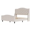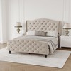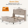 - 【Modern Design】 This queen bed frame features a minimalist platform bed profile combined with an upholstered frame and headboard, offering ergonomic comfort. The modern design includes a button-tufted headboard with rivet accents, enhancing the sophistication of your bedroom décor.