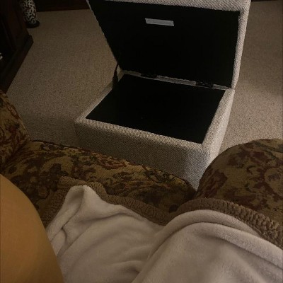 A: Hi Melissa - Thank you for reaching out to us with your query about the Upholstered Storage Ottoman Natural/Brown - Hearth & Hand. The Storage Ottoman can hold up to 75 lbs. I hope this information was helpful. Happy Shopping! - Josh