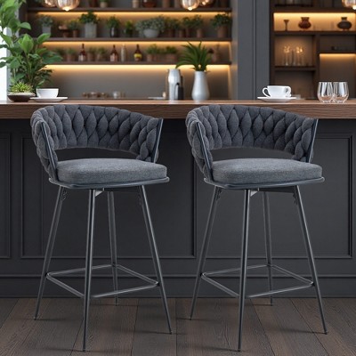 Upholstered Swivel Bar Stools with Footrest and Anti-Slip Base, Set of 4