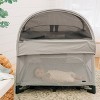 Designed for convenience and versatility, this canopy easily attaches to your REMI playard, offering UPF 50+ sun protection and shielding from bugs outdoors, while also providing room-darkening coverage indoors. It folds compactly for effortless transport and storage, making it ideal for travel, everyday use, and on-the-go families.