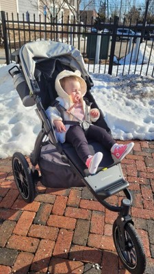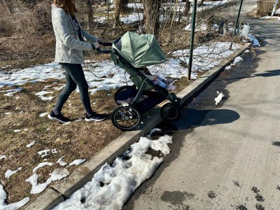 [This review was collected as part of a promotion.] Thank you product testing panel for giving me this stroller in exchange for my honest review. This stroller is amazing! I’m a big uppababy girl as I have the aria car seat and the vista with all the accessories and use it as a double for my two kids! This stroller is amazing! I only used it once for jogging because it’s been non stop snowing in NY, and when I did, it was such an easy push, so easy to remain in control of and I love that there were so many breaking options for safety and security. I love the one hand fold as I live in a five story walk up in the city and it makes folding and bringing up so quick and easy! The wheels are amazing - it’s the only stroller I’ve been able to navigate in the streets of the city over the past 2 weeks and I feel so fortunate to have it - otherwise I wouldn’t be able to get my toddler to school with the crazy snow everywhere! I love that the bassinet and car seat easily go on with the adapter and the seat was very easy to remove and put back on- while still feeling secure. The wheels are amazing and reliable and I love how large they are and the fact that they’re not air tires so I don’t have to worry about popping them. The covered storage basket is great for so many things- I love not having to worry that something’s going to slide out the top or side while I’m jogging, I love that it keeps it dry in the snow and I love that it hides extra snacks and pacis from my toddler when we’re out and about! I really cannot recommend this stroller enough! It’s great for city walking and uneven pavement, it’s great for snow, trails and jogging! It’s so versatile and I only wish there was a way to include a second seat option so I can push both of my kiddos in it because I love it so much