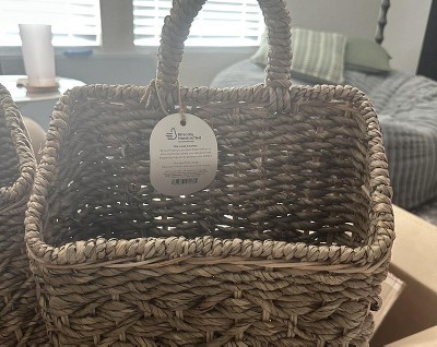 Organize your books, magazines and other essentials with the Upright Folio Grass Handwoven from Threshold™. This rectangular basket features slanted sides for an eye-catching look. Woven with grass, this natural-shade upright folio basket comes with a top handle, and is a great decorative accent in any room.