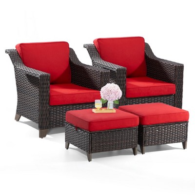 - Durable Construction: Built to last with heavy-duty, rust-resistant steel frames wrapped in all-weather synthetic wicker. Natural wood-like handrails and legs add to the sturdy and stylish appeal.