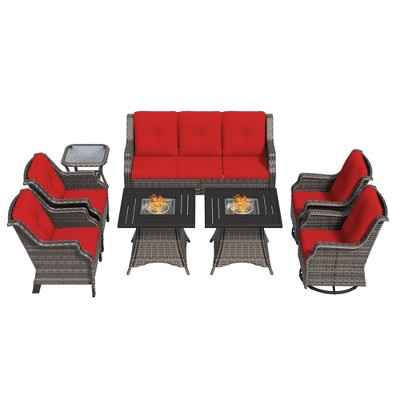 UPTIOT 7-Person Wicker Outdoor Patio Furniture Set Rattan Chair Wicker Set with Red Cushion
