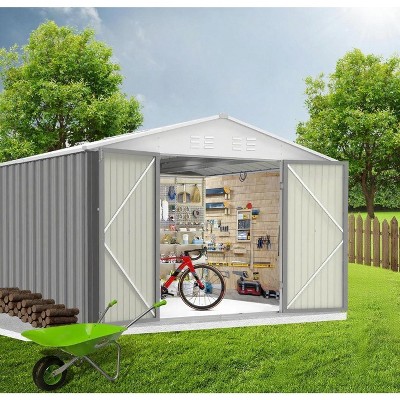 UPTIOT Modern Durable Resin Outdoor Storage Shed With Floor and Double Doors