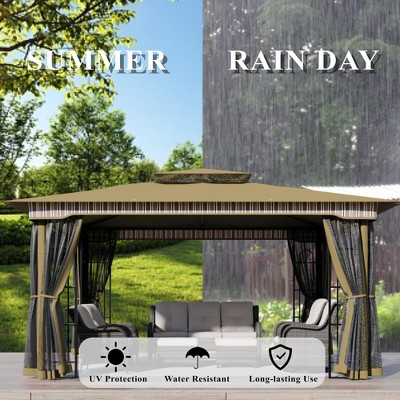 UPTIOT 11 FT Ventilated Gazebo Tent with UV-Protective 2-Tier Top & Ceiling Hooks