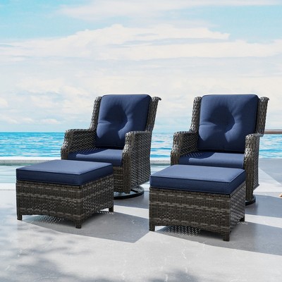 Elevate your outdoor relaxation with this UPTIOT lounge ensemble, featuring ergonomic swivel chairs with widened backrests and broad armrests for optimal comfort, paired with coordinating ottomans and a versatile side table; crafted from UV-resistant, weather-proof PE rattan and water-repellent fabric, this set ensures durable, all-season enjoyment while resisting fading and environmental damage.