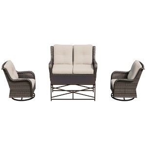 UPTIOT 4-Piece Outdoor Lounge Set with Swivel Rocking Chairs, Double Sofa & Rectangle Table