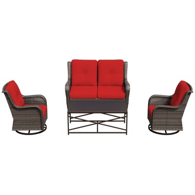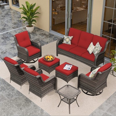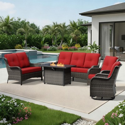 This premium UPTIOT outdoor set combines functionality and comfort for versatile patio living. The dual-use fireplace provides adjustable heating while storing gas cylinders, paired with UV-resistant PE wicker furniture that withstands tearing and weather extremes. Relax on the thick, breathable cushion chair or enjoy 360¡ã swivel motion in the 350-lb capacity rocker. Crafted for durability and year-round use, this complete ensemble transforms any outdoor space into a stylish retreat.