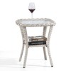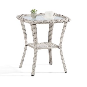 This exquisite side table is crafted with hand-woven all-weather wicker, powder-coated steel frame and tempered glass. It will adorn your outdoor or indoor living space. Its size is perfect to match your chair, sofa, etc. The double layer design adds space for your drinks, snacks and books. Four curved legs greatly enhance the stability of the table and can provide a max weight capacity of 100 lbs. This side table is stylish and well-made,which is the perfect addition to your outdoor furniture set.