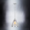 - VISUAL : The center stem descends into an enlarged casing that enters the dropping clear seeded glass as a socket. Outlining the tapered glass shade is a trio of slender frames emerging from the top casing and bulging out parallel to the glass. The frames are clasped at the bottom with tiny brackets attached to the base ring trim accent. The hollow base adds further depth to the vintage glow.