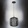 The Bedford Collection of light fixtures fuses modern organic style with artisanal craftsmanship. Inspired by the graceful interlacing of a bird’s nest, the collection features an indoor pendant light with a distinctive and artistic design. The pendant has a unique, open-weave design that creates a visually striking and airy silhouette. It blends modern minimalism with organic elements, making it suitable for a variety of interior styles. The light features a large, drum-shaped shade made from intricately woven natural fibers, forming a cage-like structure that encases the inner shade. Inside the woven outer shade, there is a cylindrical inner shade made from white fabric. The fabric inner shade diffuses the light evenly, providing a soft and pleasant glow. The fixture is finished in brushed nickel, adding a sleek and contemporary touch to the design. This finish complements the natural woven fibers, also available in black, enhancing the overall aesthetic appeal. The pendant includes a single light fixture positioned within the fabric inner shade, designed to hold a standard-sized bulb, which is concealed within the inner shade for diffused lighting. The pendant is suspended from the ceiling by a clear cord, which gives the illusion of the shade floating in mid-air. The canopy is round and finished in brushed nickel, providing a secure and cohesive mounting point. The combination of the woven outer shade and the fabric inner shade allows for a warm and ambient illumination. The woven pattern of the outer shade creates interesting shadows and light patterns on surrounding surfaces, enhancing the visual interest.