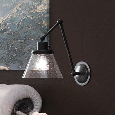 VISUAL : This collection stands out for its mechanical elements. The adjustable arms of the wall sconces enhance both visual appeal and functionality, providing task lighting. Pendants feature adjustable heads for versatile positioning, while the fixed-position bath lights are designed to focus light on the sink. Oversized glass and metal configurations complete the look.