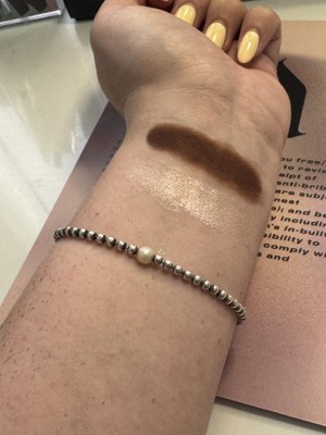 [This review was collected as part of a promotion.] The shade I have is “peach bum” and I love it. You have have a more sheer glitter look or a built up metallic look. I wear it everyday and am so glad I have it for summer.