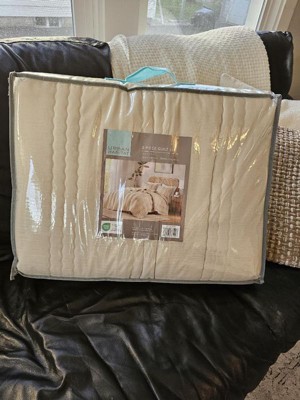 [This review was collected as part of a promotion.] Loved the feel of the bedding and gauzy material. It was light but still had a cozy feel to it. The color fits perfectly with the room and was exactly what I was hoping for. Also loved how this quilt looked simply laid across the end of the bed.