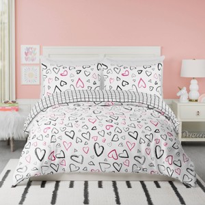 Bring a touch of playful charm to your bedroom with the Roxy Hearts Comforter Set. Featuring a delightful heart pattern that reverses to a modern black and white grid design, allowing you to switch up your look whenever you choose. Crafted from 100% brushed polyester, this comforter is not only incredibly soft but also durable. The polyester fill adds the perfect layer of warmth, making it ideal for year-round use. This comforter set is also machine washable for easy care and low maintenance.