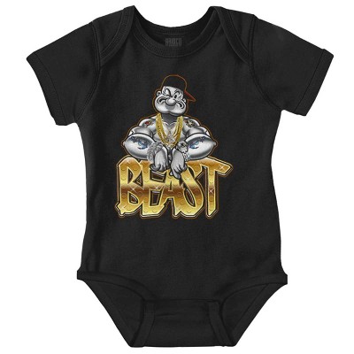 Urban Popeye Bling Muscle Flexin Baby Romper Boys or Girls Licensed Brisco Brands Black 12m