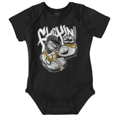 In the market for treating yourself to a little something? You should make it this infant baby romper bodysuit. Wear this so everyone knows you think Popeye rules. Everyone will want to know where you got it! Details
