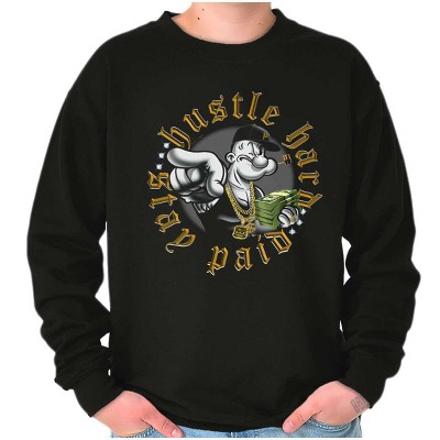 Urban Popeye Hustle Muscle Cartoon Sweatshirt for Men or Women Licensed Brisco Brands Black s